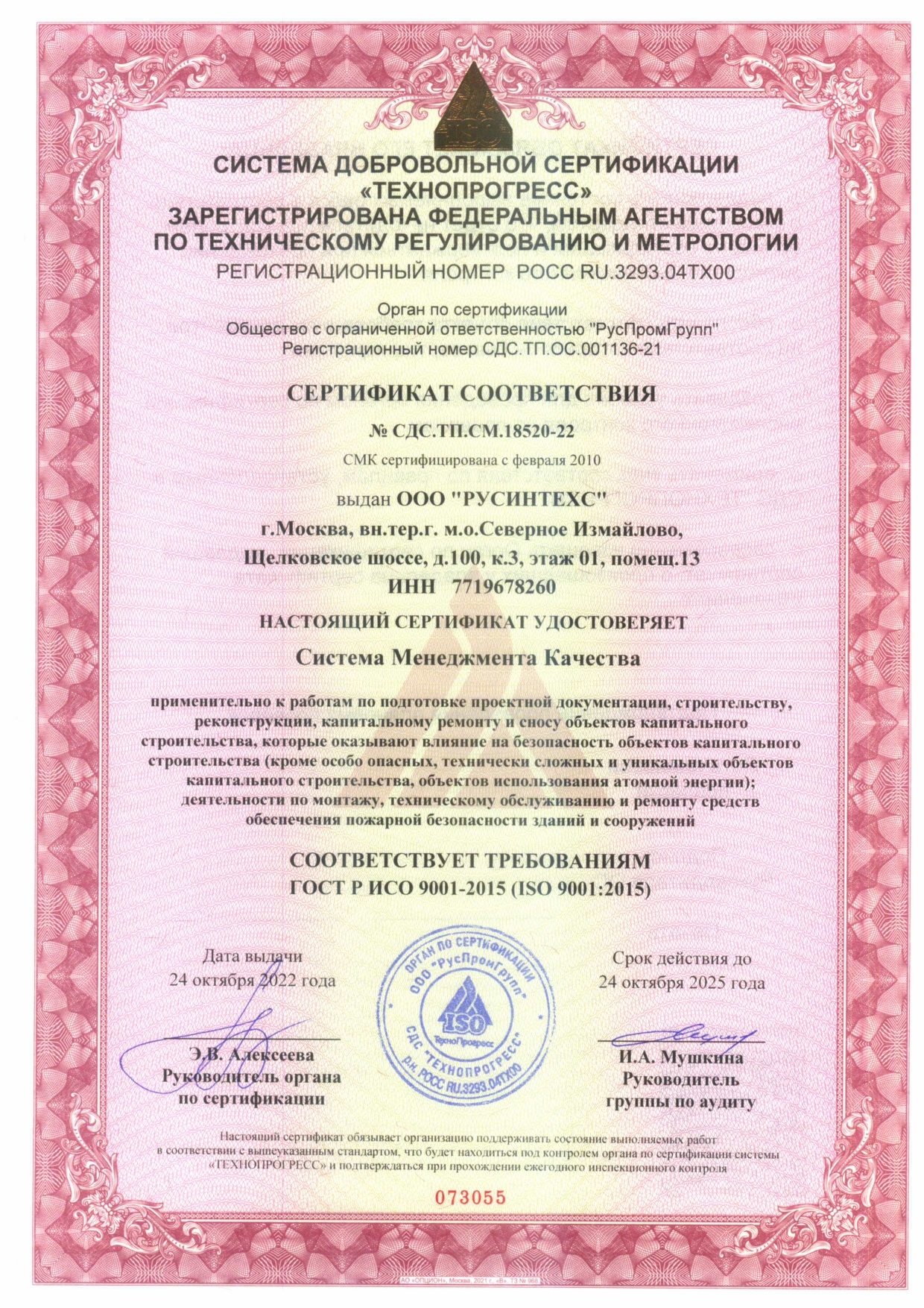 ООО УК «Эволюция»;Работы по освидетельствованию модулей газового пожаротушения;Выполнены работы по техническому освидетельствованию модулей газового пожаротушения ПАО "Транснефть" по адресу: г. Москва, ул. Академика Королева, д.6, корп.1;2021;